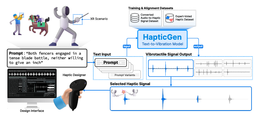๋๊ท๋ชจ ๋ฐ์ดํฐ์ ๋ถ์ฌ๋ผ๋ ํ ํฑ ๋ถ์ผ์ ๊ณ ์ง์ ์ธ ๋ฌธ์ ๋ฅผ ํด๊ฒฐํ์ฌ, ํ ์คํธ ์ค๋ช ๋ง์ผ๋ก ๊ณ ํ์ง์ ์ง๋(vibrotactile) ํ ํฑ ์ ํธ๋ฅผ ์์ฑํ๋ ์ต์ด์ ์์ฑํ AI ๋ชจ๋ธ์ ๊ฐ๋ฐํ๊ณ ์ ํฉ๋๋ค.