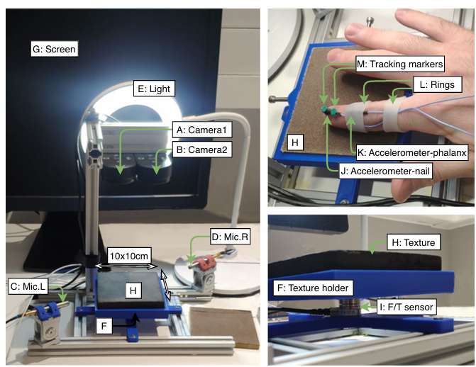 νΉν, κΈ°μ‘΄ μ°κ΅¬μμ λΆμ‘±νλ μ¬λμ β맨μκ°λ½βμ μ΄μ©ν μμ°μ€λ¬μ΄ μνΈμμ©μμ λ°μνλ μ΄κ°, μ²κ°, μκ° λ°μ΄ν°λ₯Ό λμμ μΈ‘μ νκ³ λκΈ°ννμ¬, μΈκ°μ μ΄κ° μΈμ§ μ°κ΅¬μ μΈκ³΅μ§λ₯ κ°λ°μ νμν ν΅μ¬ 리μμ€λ₯Ό μ 곡νκ³ μ ν©λλ€.